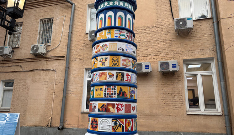 Сколько керамических работ украшает московские улицы? Не плитка на фасадах домов, а именно инсталляции? Вот и мы затруднились ответить на такой вопрос. Однако во дворике ММОМА на Петровке теперь есть именно такое украшение. Рядом с настоящей лесенкой из Эйфелевой башни поселилась неожиданная инсталляция в виде колонны, украшенной керамическими изразцами и плитками, на каждой из них свой неповторимый рисунок.